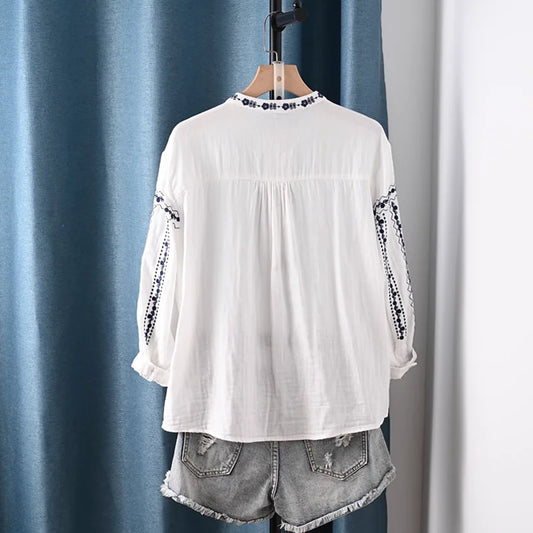 SAVE 50%Boho Bloom Embroidered Cotton Shirt