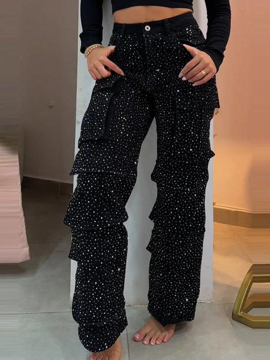 Spark Denim Rhinestone Straight Jeans