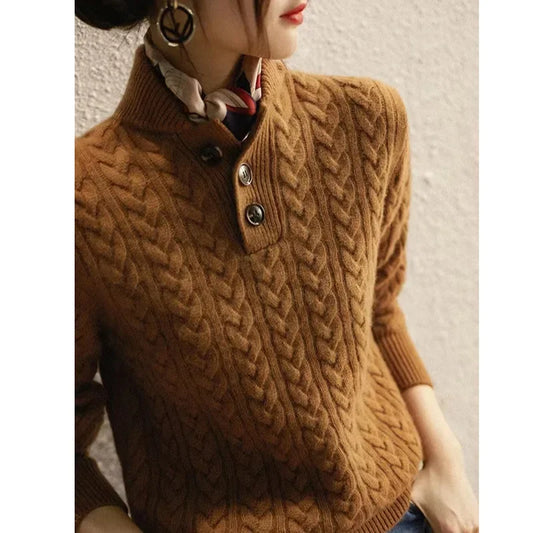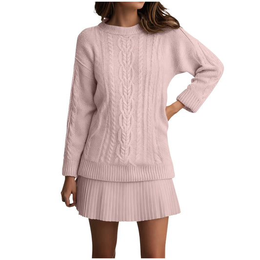 Women’s Twist Knit Sweater Dress — Retro O-Neck
