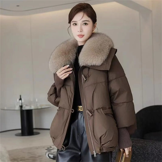 Women’s Oversized Fur Collar Coat — Down Jacket