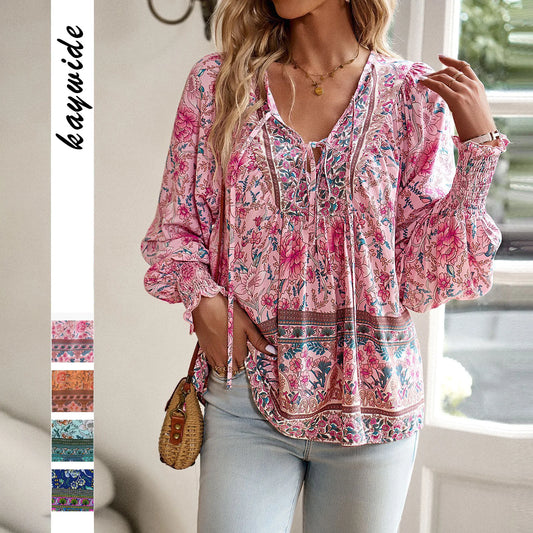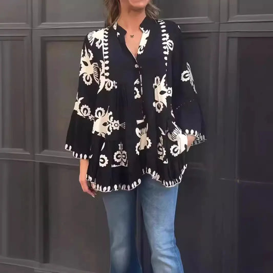SAVE 20%Elegant Print Long Sleeve Blouse
