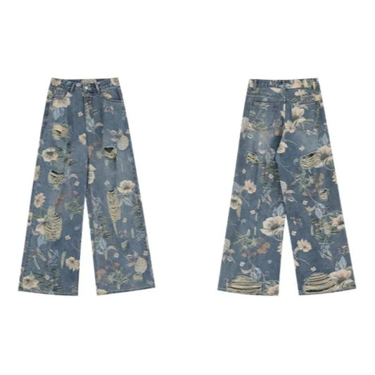SAVE 50%Vintage Floral Ripped Wide Leg Jeans