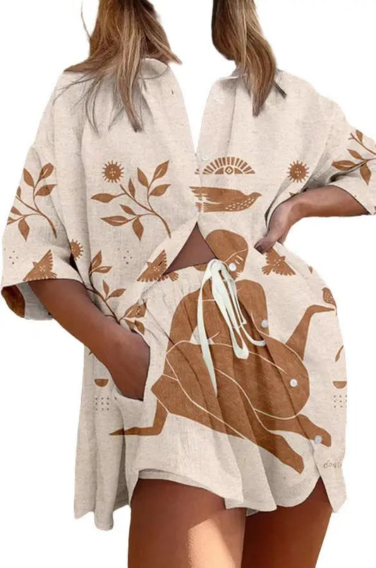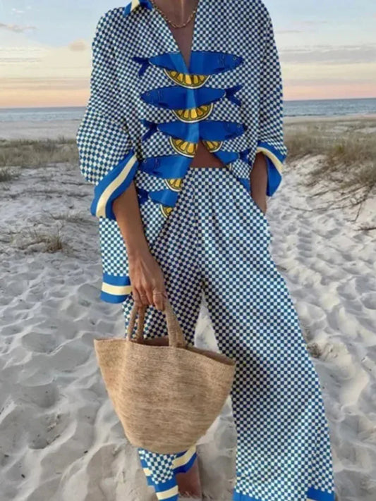 SAVE 50%Tropical Print Lace-Up Pant Set