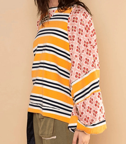 SAVE 50%Vibrant Floral Stripe Hoodie