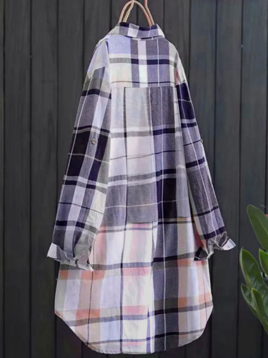 SAVE 20%Plus Size Plaid Lapel Shirt Coat
