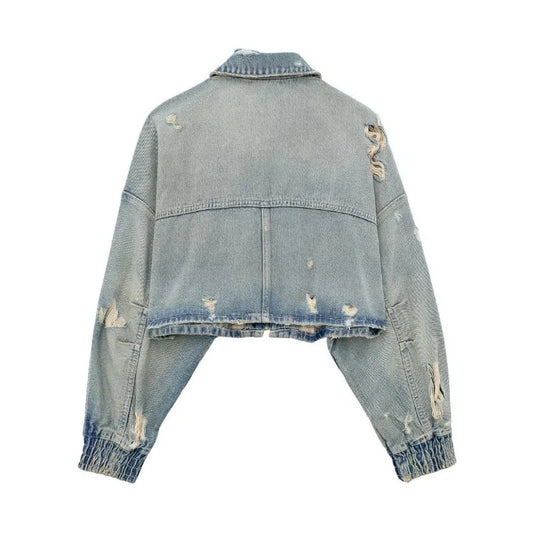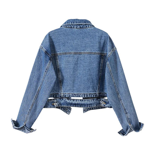 Retro Charm Cropped Denim Navel Jacket