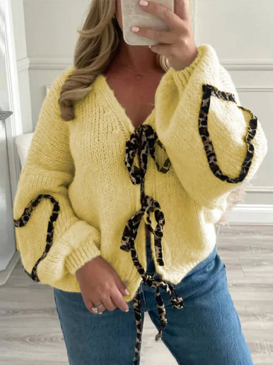 SAVE 50%Leopard Lace-Up V-Neck Cardigan