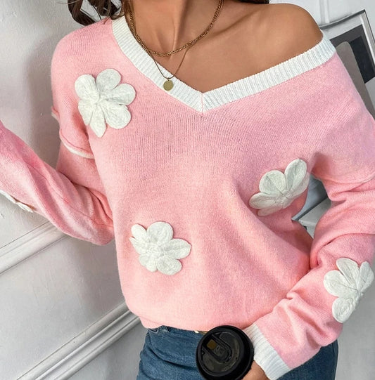 SAVE 55%Blossom Touch V-Neck Knit Sweater