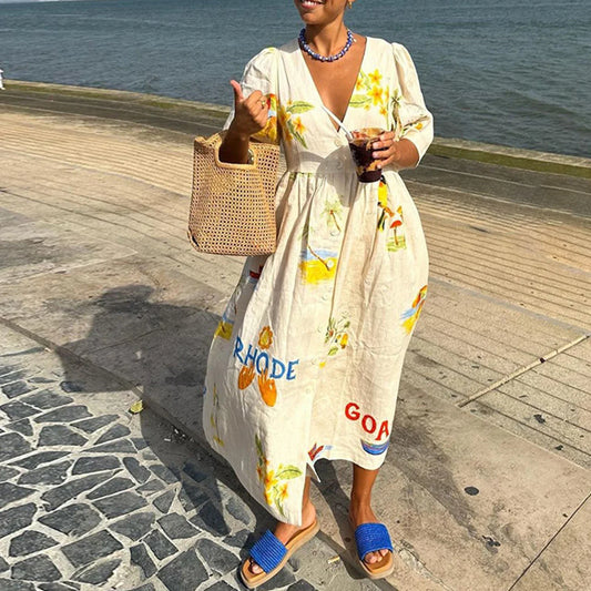 Fashion V Neck Elegant Casual Holiday Beach Dresses