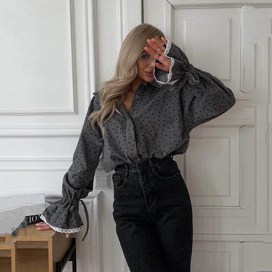 Lace Edge Slim V-Neck Long Sleeve Tee