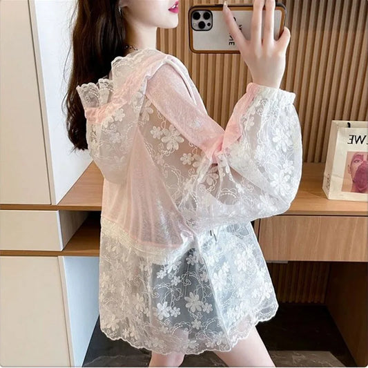 SAVE 60%LaceBreeze Mesh Patch Hooded Jacket