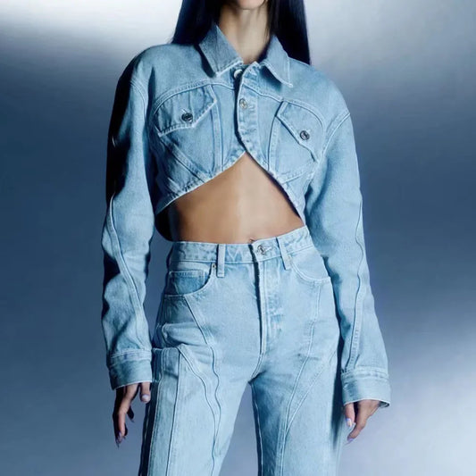 Retro Charm Cropped Denim Navel Jacket