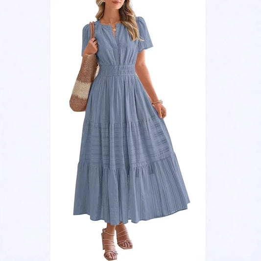SAVE 33%V-Neck Puff Sleeve Beach Dress