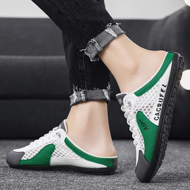 Enjoy relaxed style and breathable comfort with the Breathable PU Leather Mesh Slides — your perfect companion for warm-weather adventures.