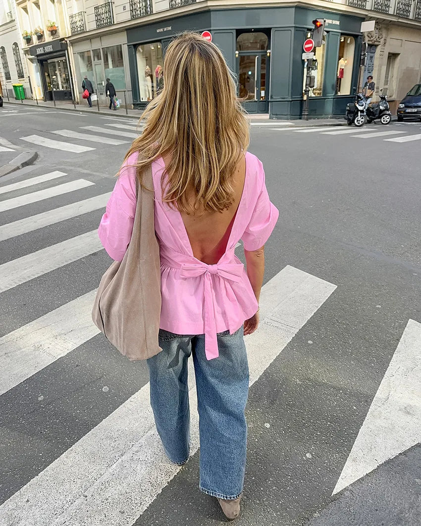 Step out in style with the Chic Bow Backless Pleated Top — where feminine detail meets chic sophistication.