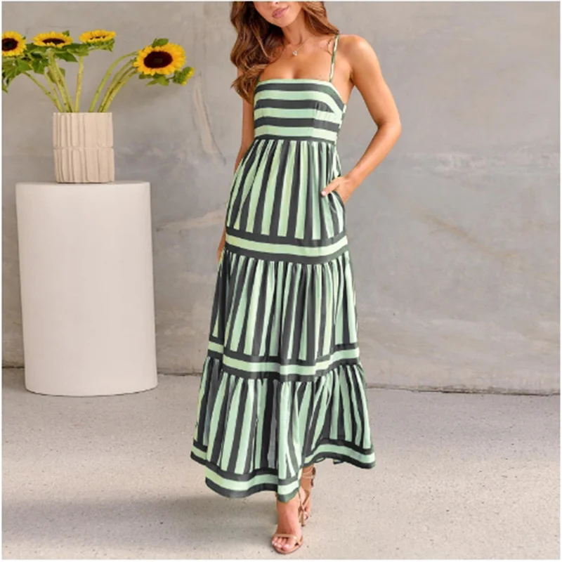 Step out in casual-chic confidence with the Chic Striped Tiered Midi Slip Dress — where comfort meets effortless style.