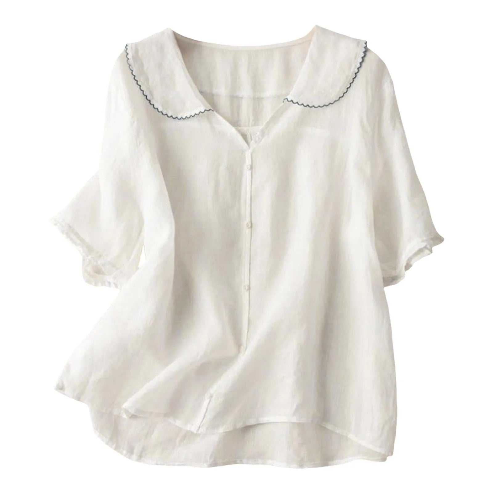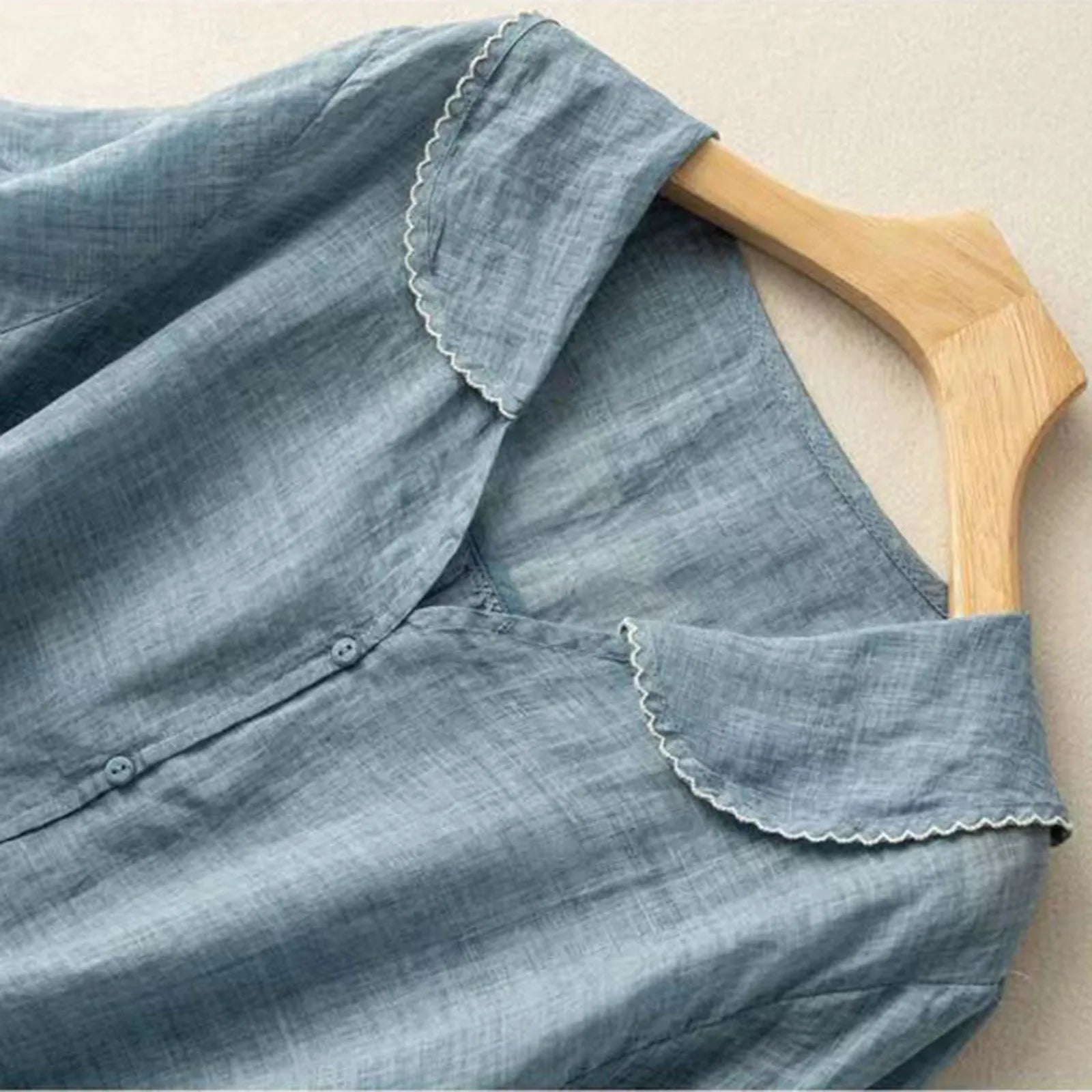 Elevate your everyday style with the Classic Navy Collar Summer Blouse — where comfort meets timeless sophistication.
