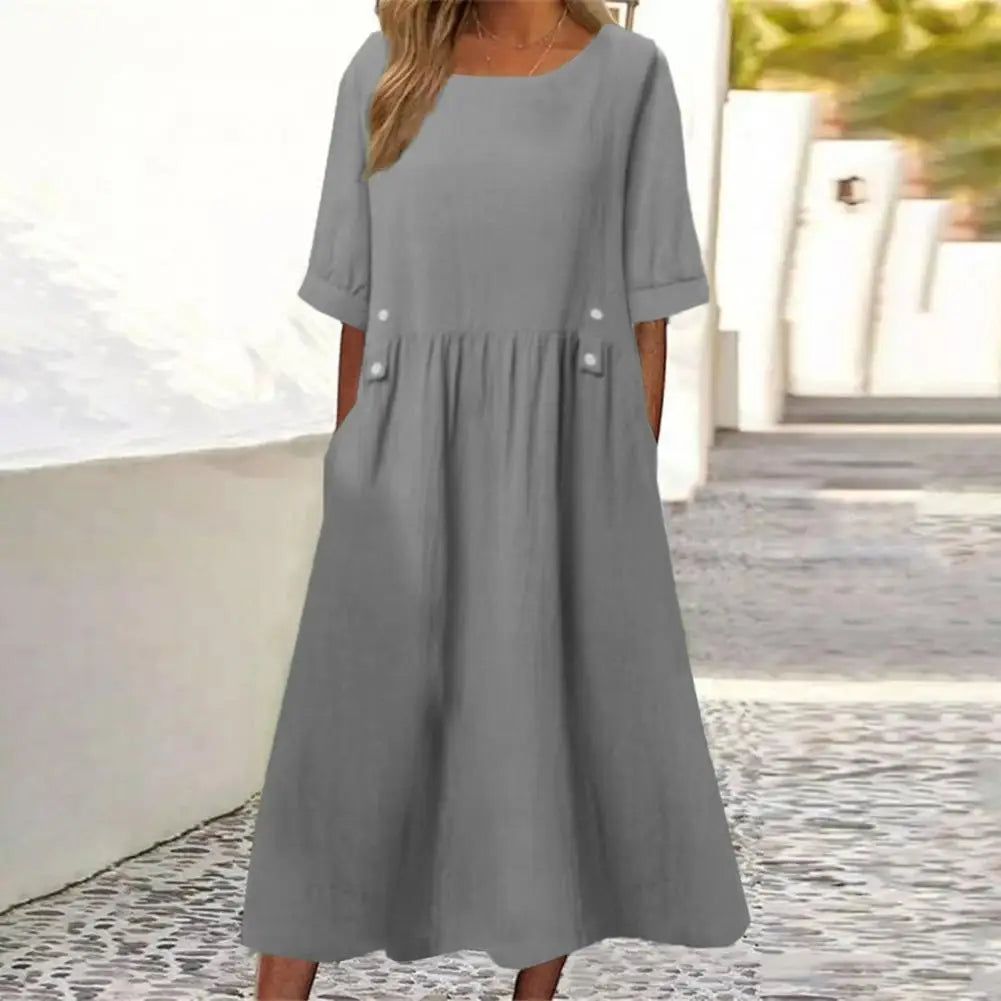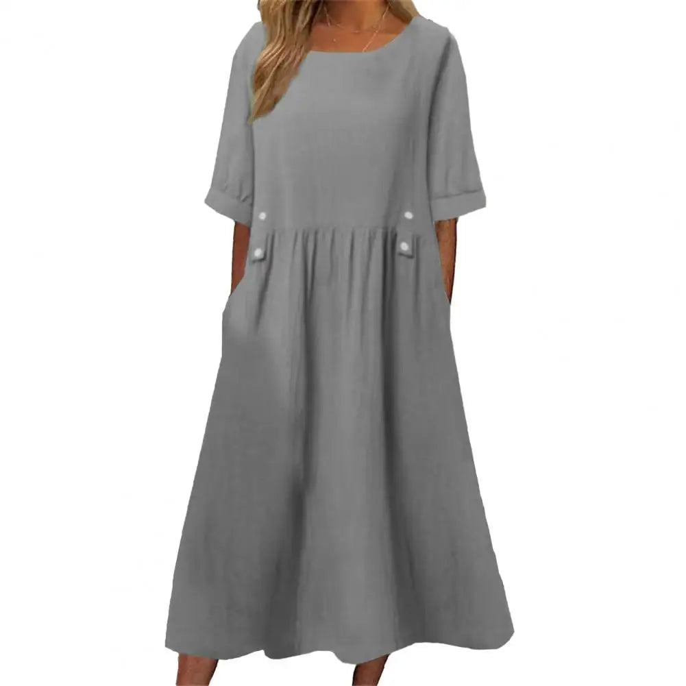 Elegant Cotton Linen Casual Dress