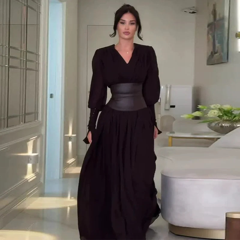 Elegant Waist-Cinch V-Neck Maxi Dress — Graceful Silhouettes for Every Occasion