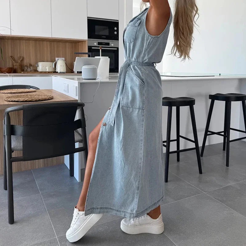 Elegant Y2K Denim Maxi Dress for Women — Retro Vibes with Modern Elegance