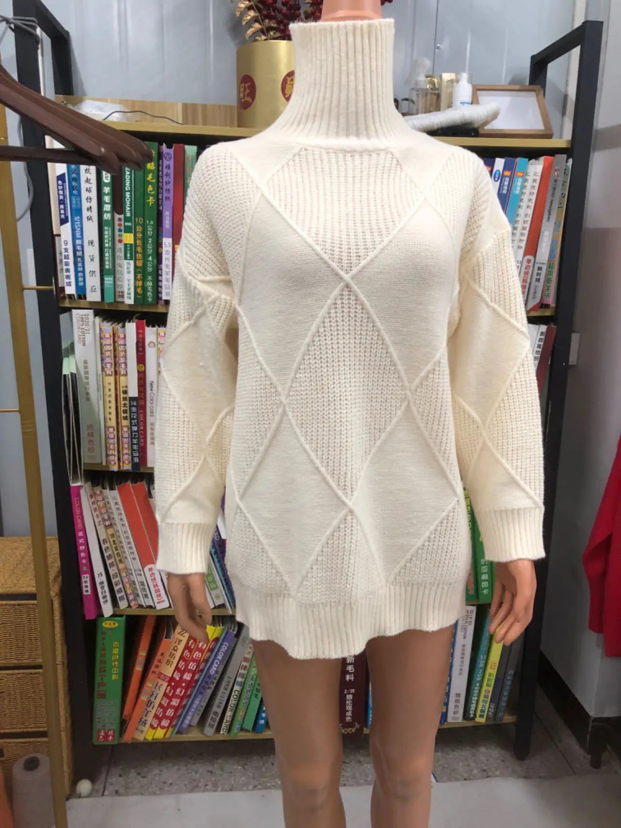 Fashionable High Collar Sweater Pure Color Diamond Patterned