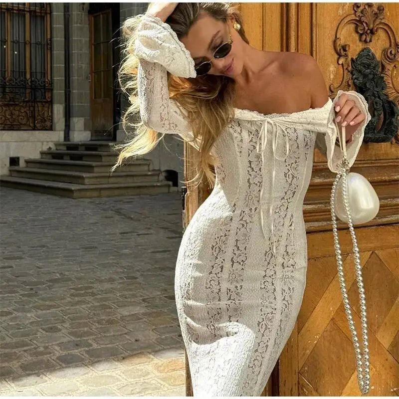 Step into the Lace Blossom Midi Dress — where delicate details bloom into unforgettable elegance.