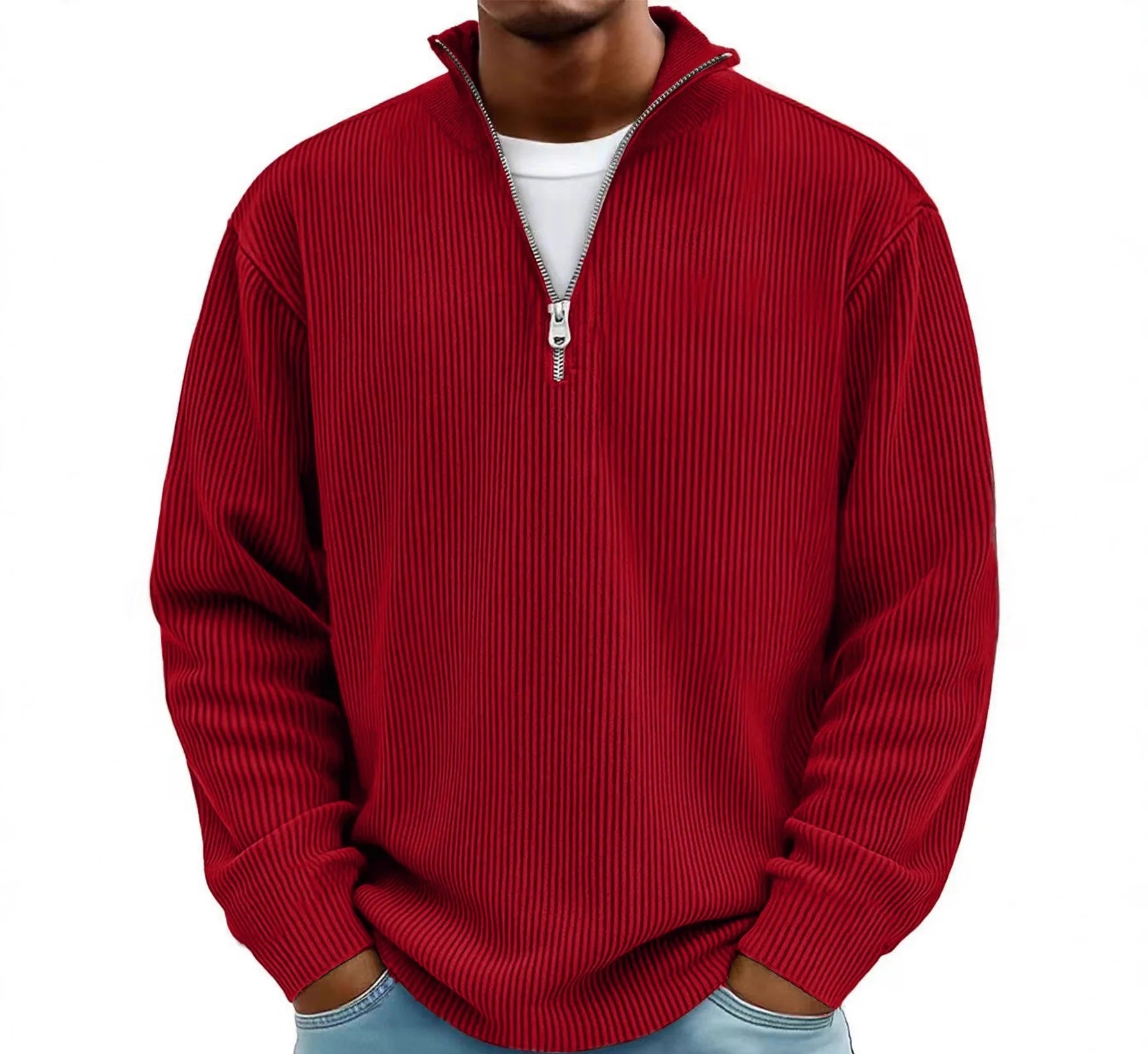 Stay stylish and comfortable this season with the Men’s Zippered Corduroy Pullover — where casual charm meets contemporary fashion.