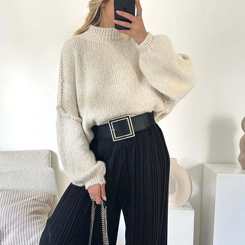 Stay snug, chic, and confidently relaxed with the Oversized Ribbed Knit Sweater a must-have knitwear staple for autumn and winter. Designed for comfort and effortless styling, this sweater is perfect for layering, lounging, or stepping out in cozy confidence.