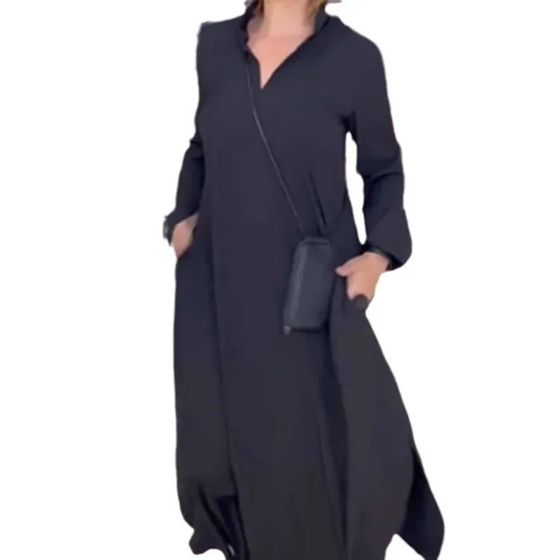 Solid V-Neck Casual Dress — Effortless Simplicity Meets Everyday Style