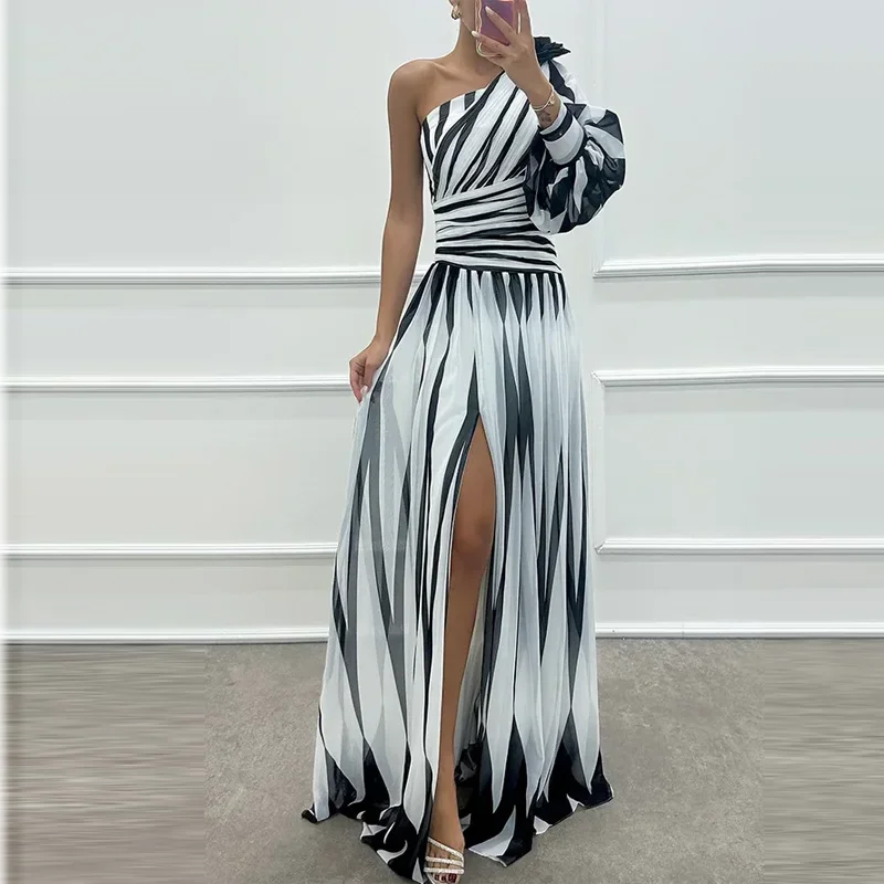 Striped Allure One-Shoulder Dress — Bold Lines, Effortless Glamour