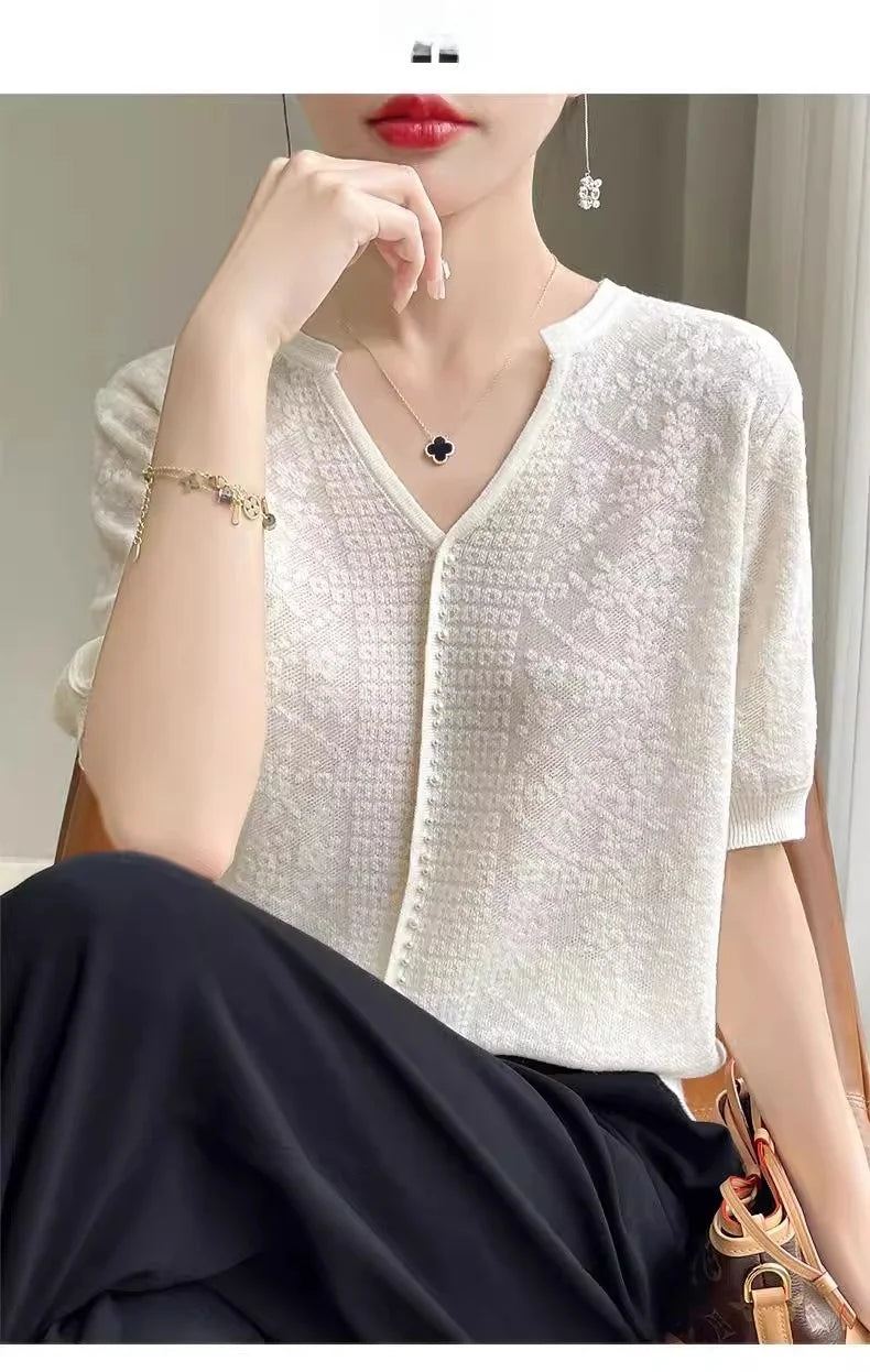 V-Neck Knitted Summer Top — Lightweight Layers with Everyday Ease