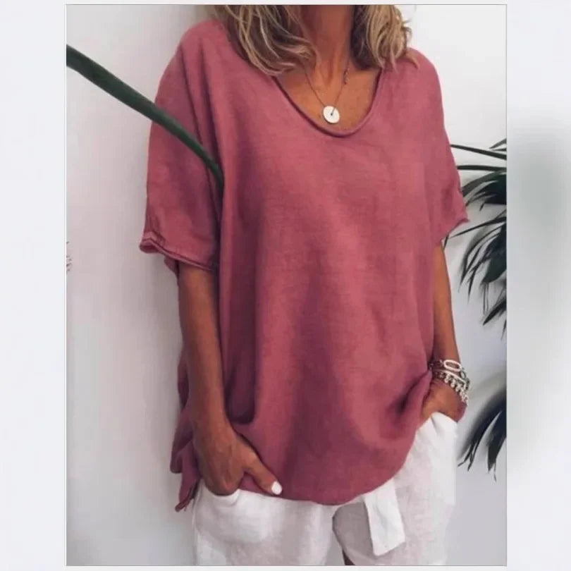 The V-neckline offers a more refined, feminine silhouette while maintaining all the comfort of a classic T-shirt.